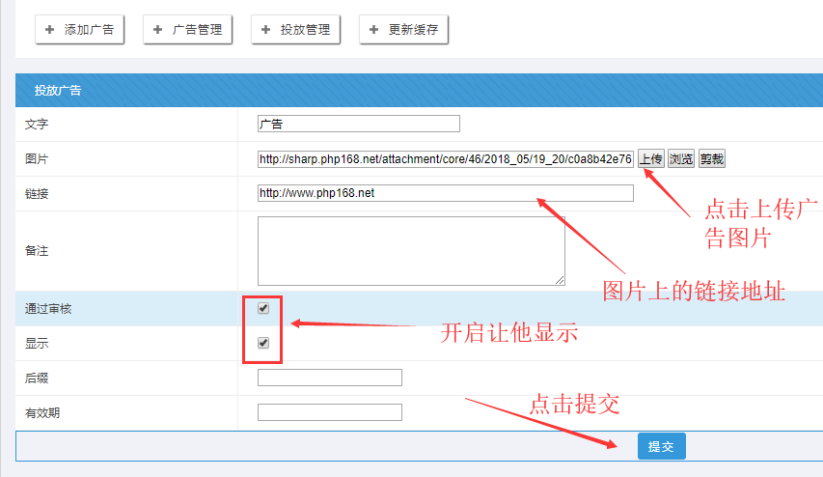 C:可以對(duì)廣告圖片和鏈接地址,進(jìn)行修改和上傳。
