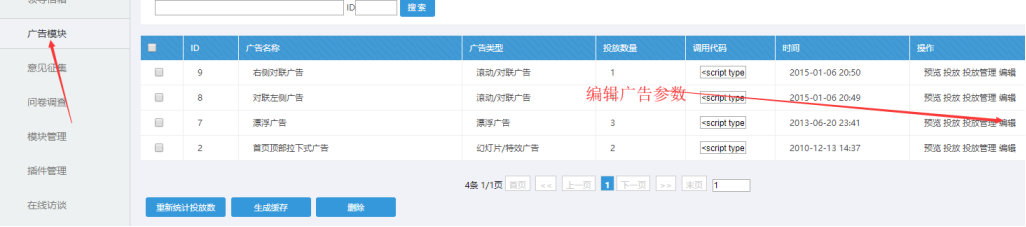 A:后臺(tái)-----廣告模塊-----編輯