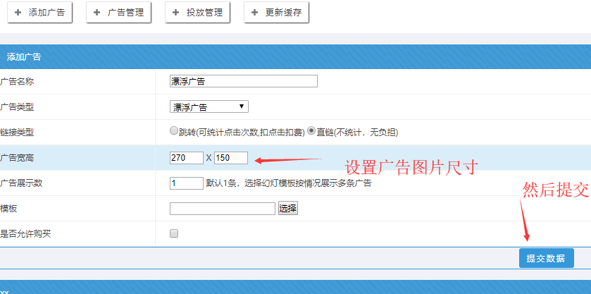 B:可以對(duì)廣告圖片大小進(jìn)行設(shè)置