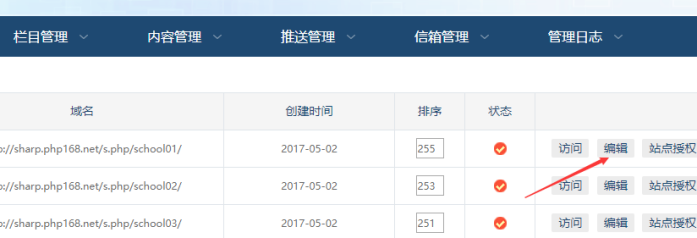 進(jìn)入分站后臺(tái)----點(diǎn)擊“編輯”