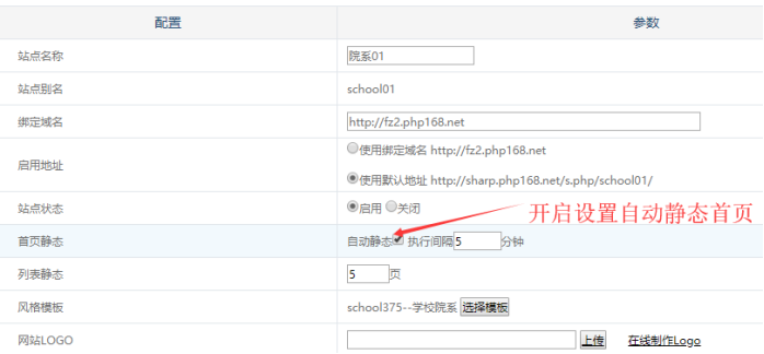 1、開(kāi)啟子站首頁(yè)自動(dòng)靜態(tài)開(kāi)關(guān)