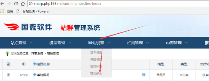 2、欄目和內(nèi)容的靜態(tài)開(kāi)關(guān)設(shè)置