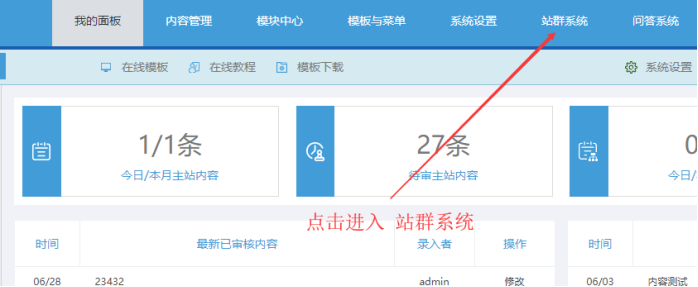 A:后臺--點擊“站群系統”