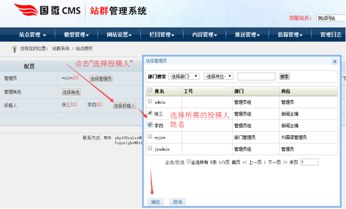 站群系統權限設置