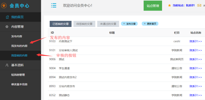 B:這樣這個管理員可以對這個分站進行內容、標簽、欄目、菜單等所有管理