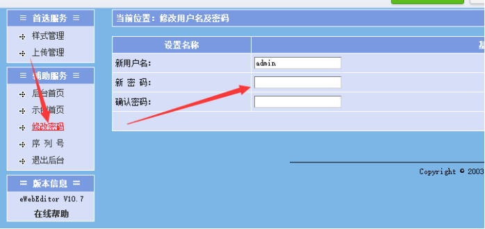 8、編輯器的后臺密碼修改
