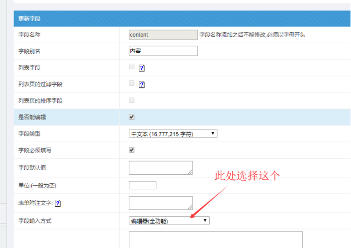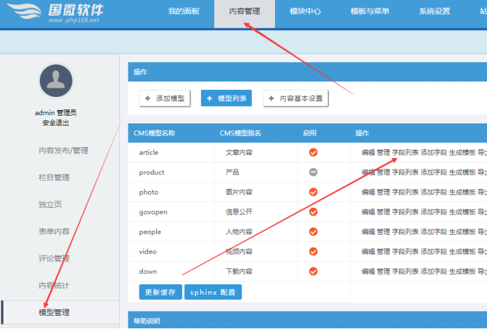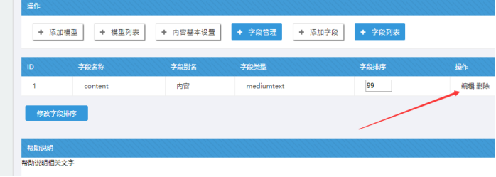 進入網站后臺------模型的字段列表