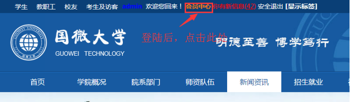 打開網站首頁,點擊登錄-----登錄后,點擊”會員中心”,即可進入會員中心;
