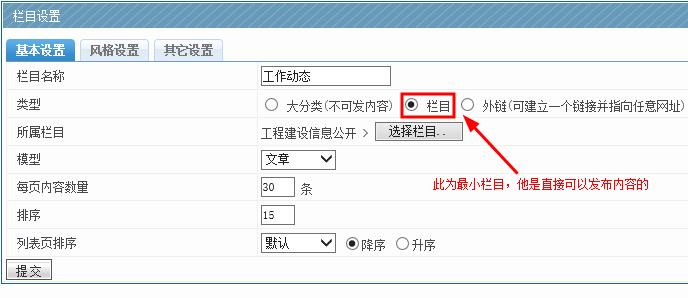 欄目:欄目就是最小類型的分類欄目,他是直接發內容的。