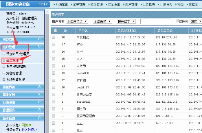 6、然后勾選對于的管理權限(上級欄目必須是勾選狀態,否則權限無效,不要的欄目權限,可以去掉勾選)