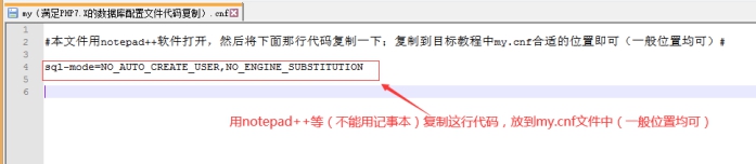 2)在A步驟中的目標my.cnf數據庫配置文件中,將剛剛上面那行代碼復制到此處(其他位置也可以),然后保存,重啟環境或服務器即可。