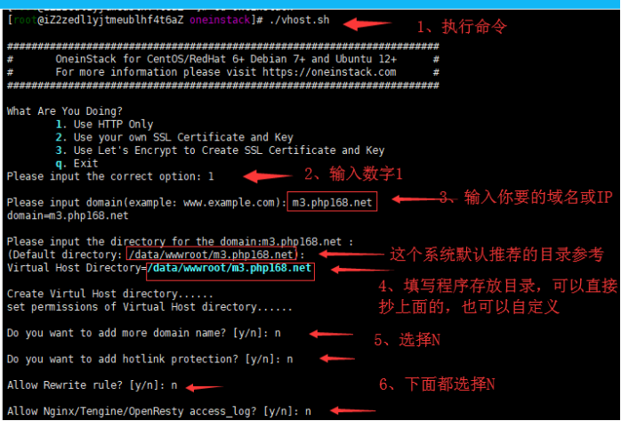 一、安裝完成環境之后進入到oneinstack目錄下執行vhost.sh生成域名配置文件(沒有域名填ip即可)