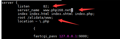 b) 修改監聽端口(listen),將80換成82