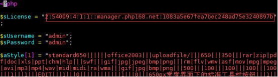 b) 修改文件中的sLicense內容項,此處填寫ewebeditor官方提供的授權碼。