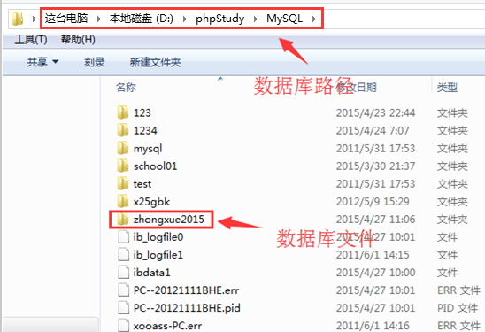 db:是該網站的數據庫;他對應的就是mysql—data—zhongxue2015這個數據庫