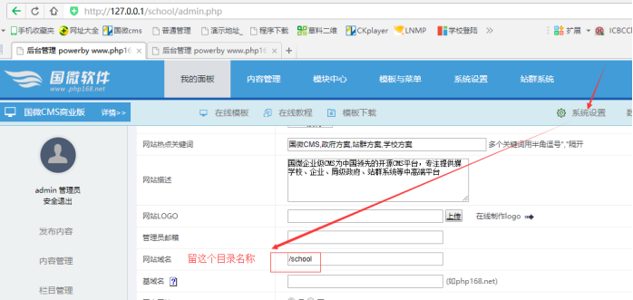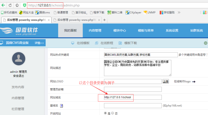 備注:如果新網站是目錄安裝形式,那域名可以填“http://abc.com/school”