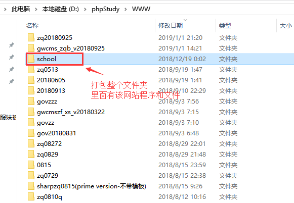 進入網站安裝的目錄,將整個程序目錄壓縮打包;每個環境目錄位置有所不同。