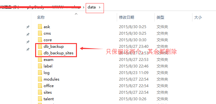 C:刪除打包文件data目錄里面的緩存文件(但保留db_backup備份數據):