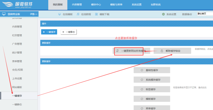 修改cook值后,需要重新登陸網站后臺,這個時候,就可以更新全站緩存。