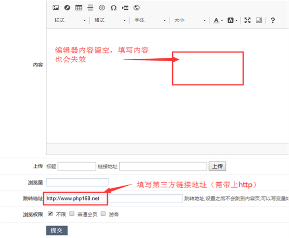 主要填寫下面的跳轉(zhuǎn)地址, 跳轉(zhuǎn)地址:就是填寫第三方網(wǎng)站地址;填寫提交即可。
