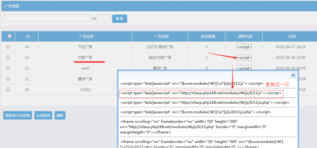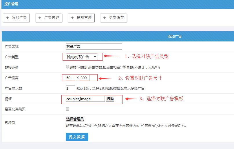 進(jìn)入廣告模塊--------選定對聯(lián)廣告----投放管理
