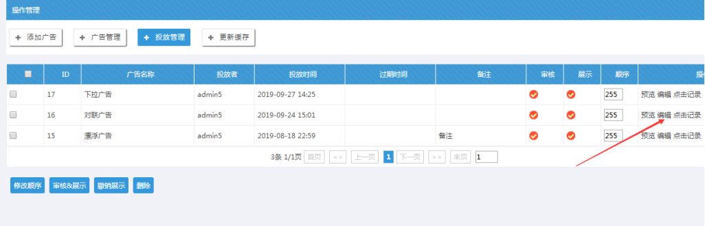 模塊中心----廣告模塊-----點(diǎn)擊“編輯” (以漂浮廣告為列)