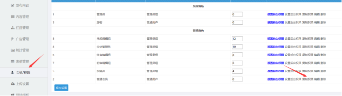 1. 點擊【會員/權限】,然后選擇所需參考的角色,在此角色后面,點擊【復制權限】