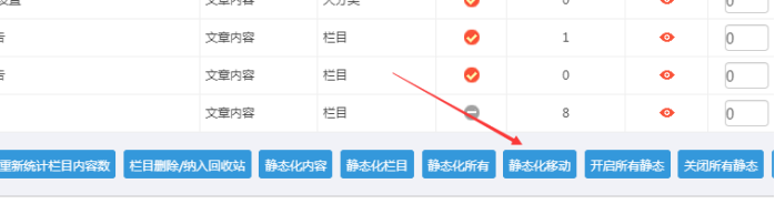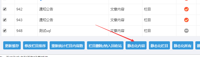 進入后臺-----勾選左邊的欄目管理--------點擊靜態(tài)化內(nèi)容即可(后續(xù)新發(fā)布的可以自動靜態(tài)的)