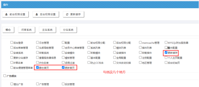 備注:確定【分站管理員】有登錄分站后臺、更新緩存、靜態首頁的權限。