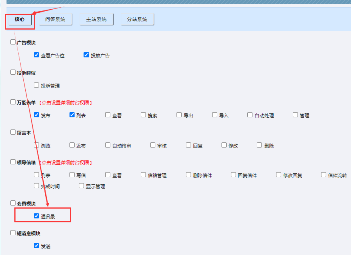 C:現在來設置【分站管理員】的通訊錄權限,他的主要作用是,分站管理員可以設置自己站點的投稿員。步驟如下: