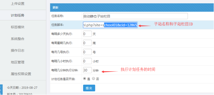同上,也是利用計劃任務,他的作用是靜態站群子站大列表;因為大列表默認不自動靜態。