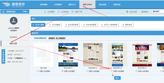 選擇站群子站模板方法;進入網站后臺---站群系統----編輯站點----選擇模板----點擊提交