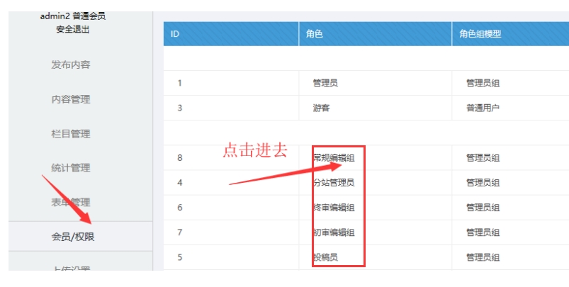 A、點擊后臺左邊的【會員/權限】-----點擊對應的角色進去