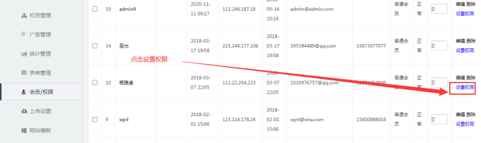 A:點擊系統后臺---【會員/權限】---選定某個角色,比如【普通會員】--------選擇某人的設置權限(點擊設置權限)