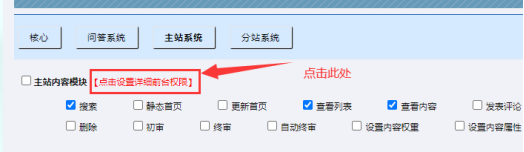 C:設置上面的權限總開關后,繼續設置細分權限,點擊【點擊設置詳細前臺權限】