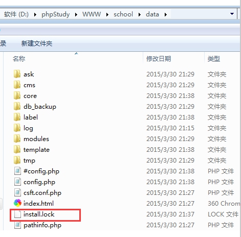 B:然后進(jìn)入現(xiàn)有的網(wǎng)站根目錄---data,刪除掉install.lock安裝鎖定文件,這樣就可以重新安裝了