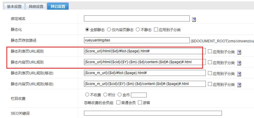 因為靜態(tài)規(guī)則改錯,導(dǎo)致無法靜態(tài)。需要復(fù)制其他欄目正確的靜態(tài)規(guī)則即可。