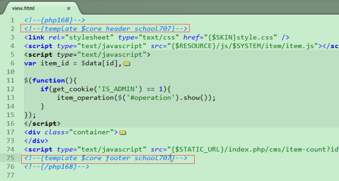 二、打開主站模板template/school707/cms/item/article/view.html,在編輯修改;
