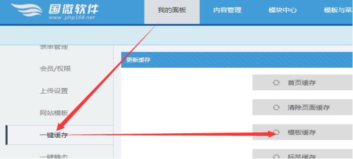 三、去后臺更新模板緩存。最后在重新靜態下內容。