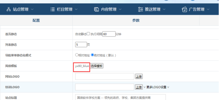 進入站群子站后臺------點擊此站的編輯站點--------查看模板選擇