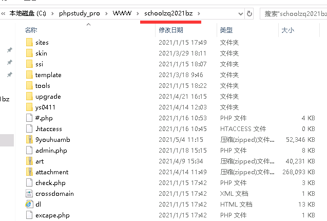 B:點擊進入www目錄,這個目錄存放了所有安裝程序的目錄,現在選定我們需要的那個網站,假設是 schoolzq2021bz這個網站,里面存放的是程序