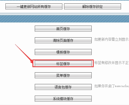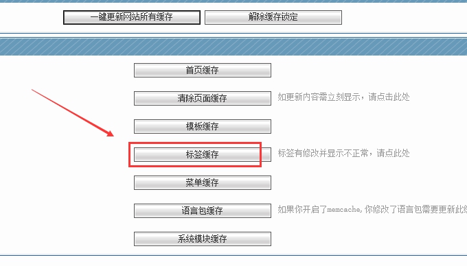 只要是發布的內容沒有顯示,都只需點擊此處“標簽緩存”按鈕即可,他是專門更新內容的。