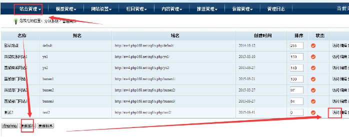 站點(diǎn)排序:站點(diǎn)數(shù)量很多的時(shí)候,管理員可以修改站點(diǎn)排序;數(shù)字大的在會(huì)排在前面;記得點(diǎn)擊下面的排序按鈕