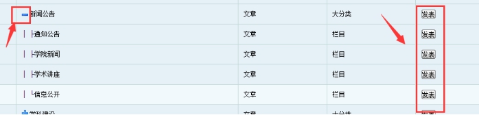 后臺(tái)發(fā)布:點(diǎn)擊添加內(nèi)容后,可以展開(kāi)左邊的+號(hào),顯示小列表;然后點(diǎn)擊右邊的發(fā)布按鈕發(fā)布內(nèi)容
