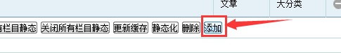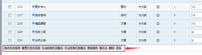 欄目操作:底部的欄目操作按鈕,包括排序、靜態(tài)、添加。