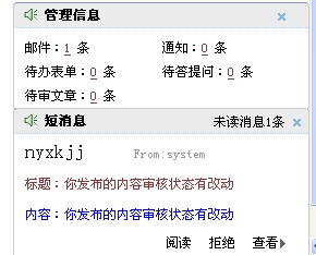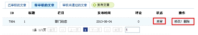 新發布的文章在——待審核的文章欄目下 狀態顯示為未審核 等待管理員的審核
