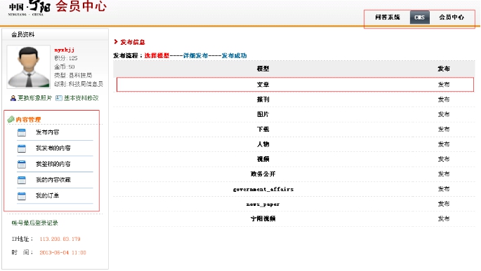 點擊CMS——內容管理——發布內容——右側選擇——文章——發布