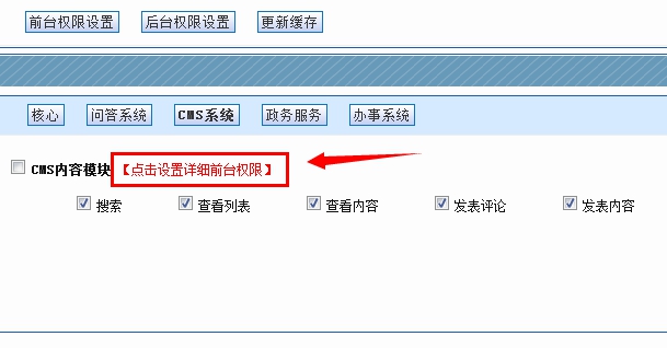 4、在這個界面,同樣再點擊這個“點擊設置詳細前臺權限”