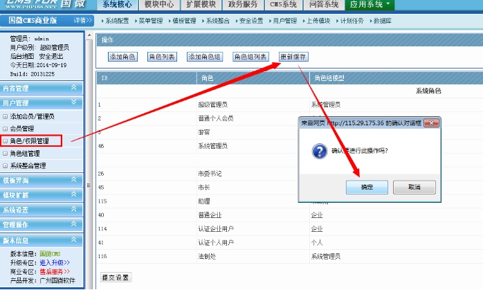 7、最后就是更新這個緩存就可以 。那么王軍就只能管理你所設置的欄目了。