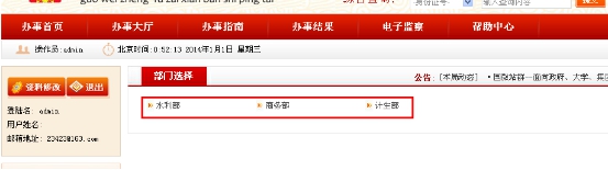 點(diǎn)擊提交后,我們可以看到辦事大廳里面會(huì)出現(xiàn)這幾個(gè)部門名稱
